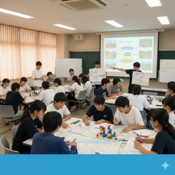 地域の課題や魅力を題材に、まちづくりのアイデアを探求する内容です。楽しみながら地域への関心や協働力を育みます。(体験型も可能)